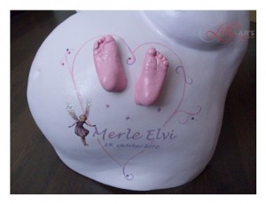 Diejenigen, die mit dem Aufarbeiten des Bauchabdruck bis nach der Geburt warten, können Fußabdrücke ihres Engels einarbeiten lassen. Das ist dann eine tolle Kombination und gibt ganz niedliche Ergebnisse!